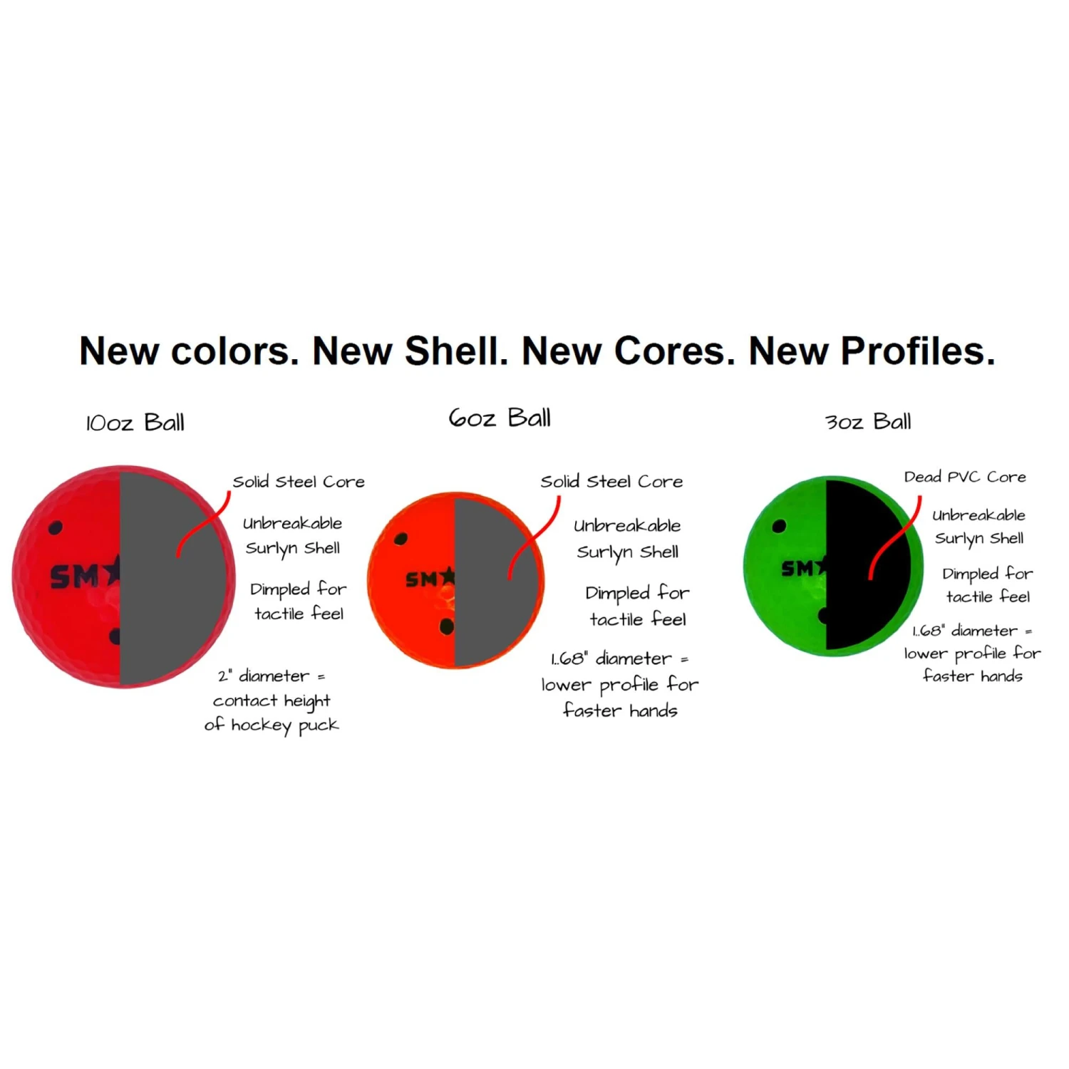The Stickhandling & Shooting Ball helps players develop a “feel” for the puck and super “soft” hands for better stickhandling, shooting and passing control. The patented 2-piece dynamic core technology is the only hockey training ball engineered to accurately simulate the weight, bounce, slide and contact height of an ice hockey puck so players can transition from off-ice training to on-ice play without noticing a difference.